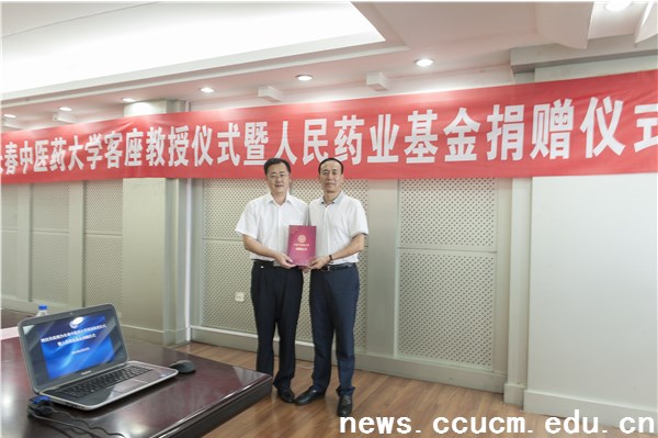 仪式上,许家顺先生向学校教育基金会捐赠了基金50万元。学校党委副书记姜彤伟代表学校为其颁发了捐赠证书。同时学校聘任许家顺先生为长春中医药大学客座教授。校长宋柏林教授宣读了聘任许家顺为长春中医药大学客座教授的决定,为许家顺先生颁发了聘书并赠送了长春中医药大学校徽。